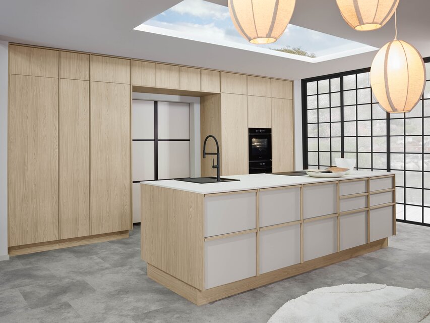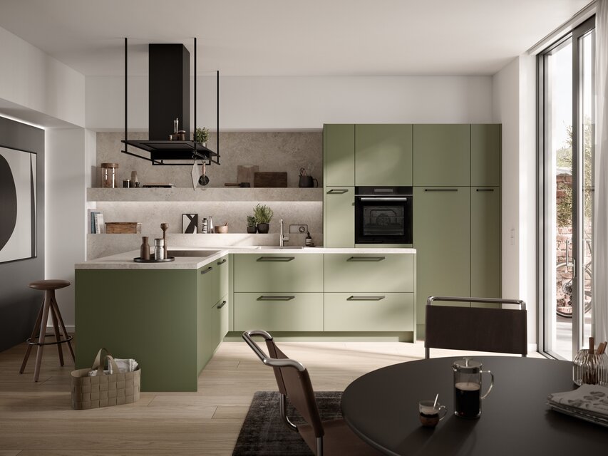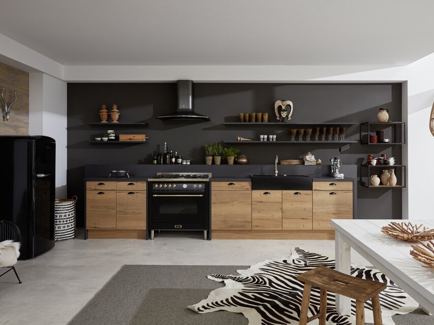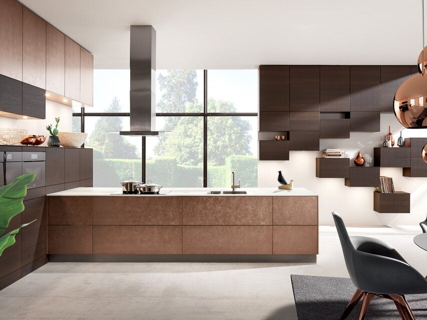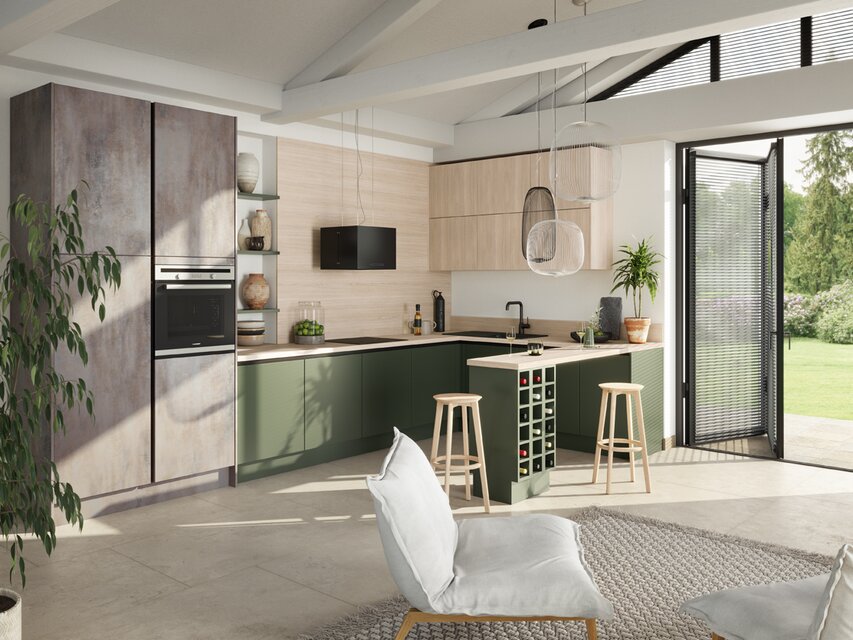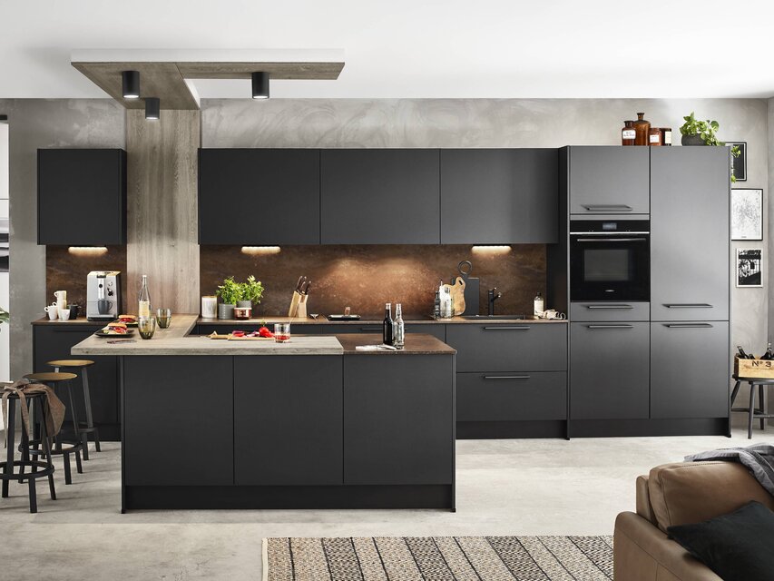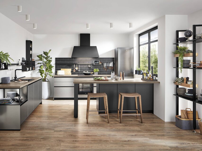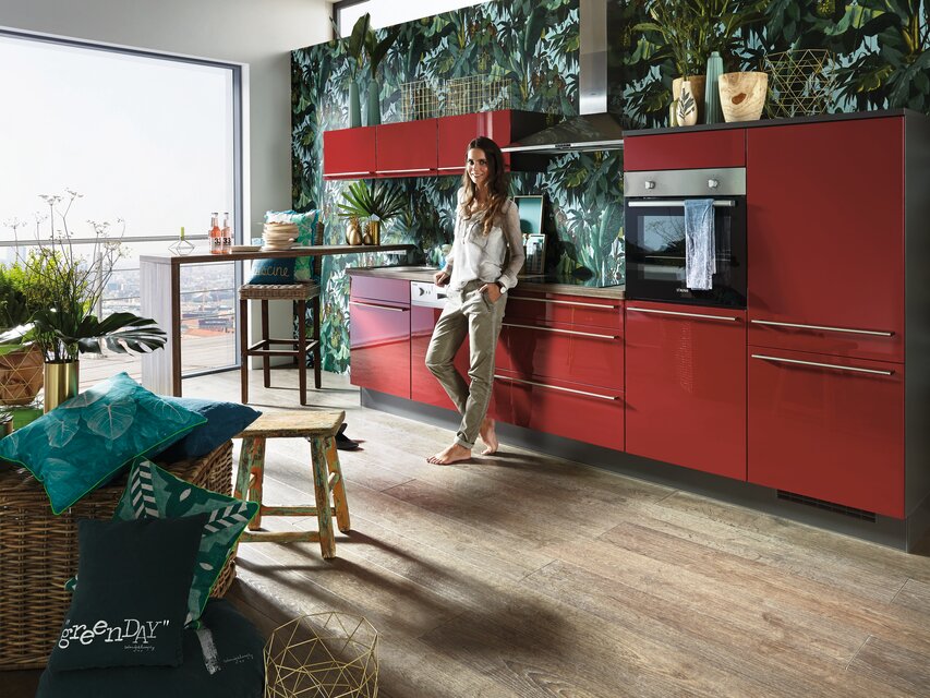 Die Einbauküche ist der Ort, an dem Kochen, Essen, Wohnen und die Zusammenkunft mit lieben Menschen miteinander verbunden werden. Um einen optisch nahtlosen Übergang zu anderen Bereichen des Zuhauses zu ermöglichen, bietet es sich an, das Konzept der anderen Räume bei der Gestaltung und Planung der Küche aufzugreifen. Durch das Einbeziehen des Wohnstils angrenzender Bereiche entsteht ein optisch ansprechendes harmonisches Gesamtbild. Realisieren lässt sich dies unter anderem durch die Wahl der Dekore der Fronten und der Materialkombinationen, die in der Küche eingesetzt werden. Aktuelle Trends und pfiffige Ideen verwandeln die Küche in ein Ensemble, das sich zu einem perfekten Ganzen fügt. Das erzeugt eine wohnliche Atmosphäre, in der man sich einfach wohlfühlt. Aus der Kombination ausgeklügelter Elektrogeräte mit stilvollem Design lassen sich Traumküchen von außerordentlicher Eleganz konzipieren, bei denen man mit zahlreichen zusätzlichen Funktionen verwöhnt wird.