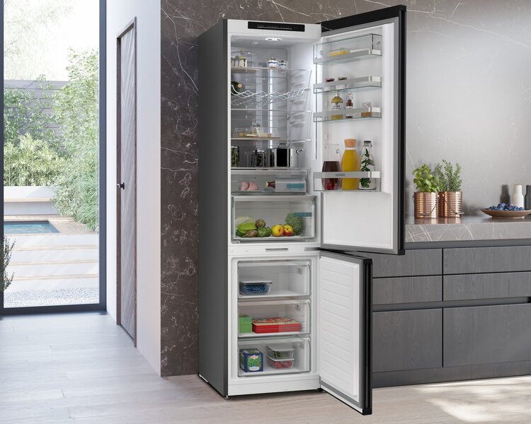 Auch in puncto Ausstattung sind freistehende Geräte vielseitig. Viele verfügen über moderne Funktionen wie NoFrost, Schnellkühlen, Temperaturzonen für besondere Lebensmittel oder energieeffiziente LED-Beleuchtung. Große Obst- und Gemüseschubladen, höhenverstellbare Ablagen oder separate Frischezonen erleichtern die Organisation und sorgen für Übersicht im Innenraum.