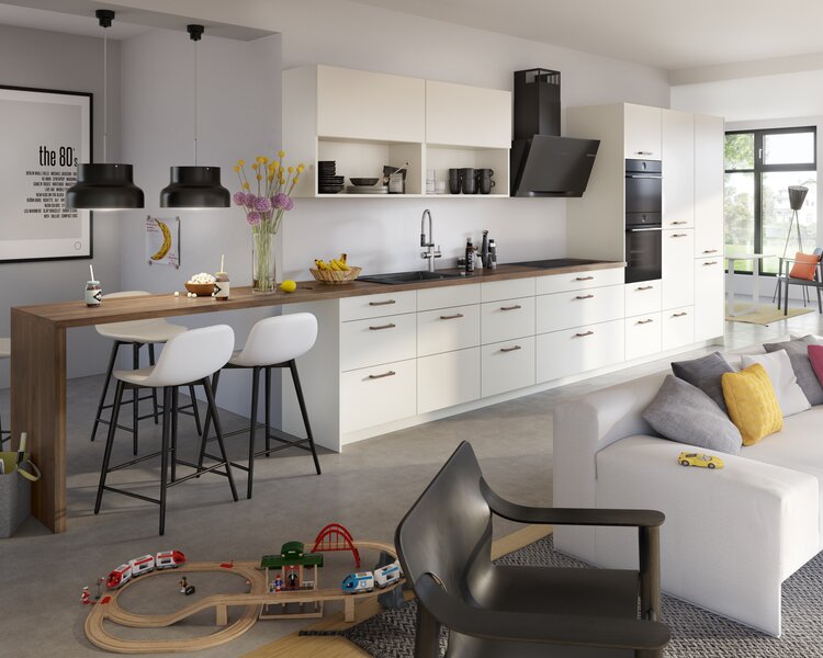 Gleichzeitig ist es essenziell, genügend Arbeitsflächen einzuplanen. Diese sollten so konzipiert sein, dass mehrere Familienmitglieder gleichzeitig an verschiedenen Aufgaben arbeiten können. Während ein Elternteil das Abendessen vorbereitet, kann ein Kind seine Hausaufgaben machen und ein weiteres Familienmitglied den Tisch decken. Eine gut durchdachte Anordnung der Arbeitsflächen ermöglicht eine harmonische und effiziente Nutzung der Küche, ohne dass es zu Engpässen kommt.